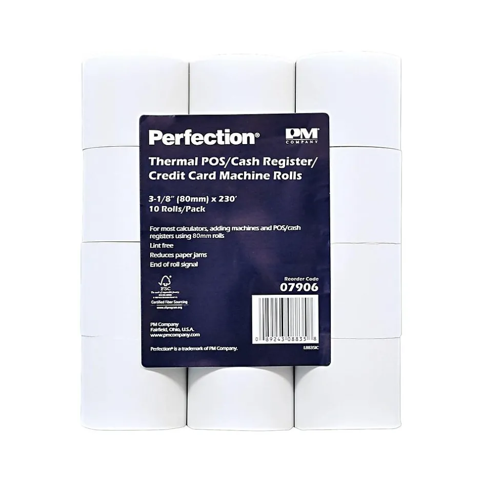 Use these rolls of POS paper to keep your cash register stocked, allowing you to spend more time helping customers and less time worrying about refilling the paper. These PM Company POS paper rolls are 230 feet in length for long-lasting use and designed for use in thermal printing cash registers to prevent ink smearing.
