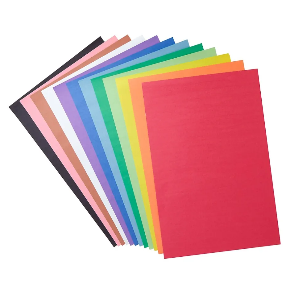 - Sheets are made of paper and come in assorted colors: pink, red, orange, yellow, lime, green, light blue, blue, violet, white, brown, and black