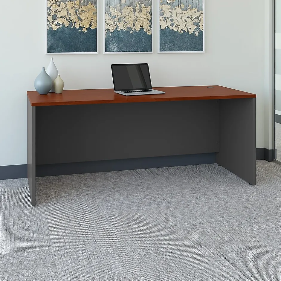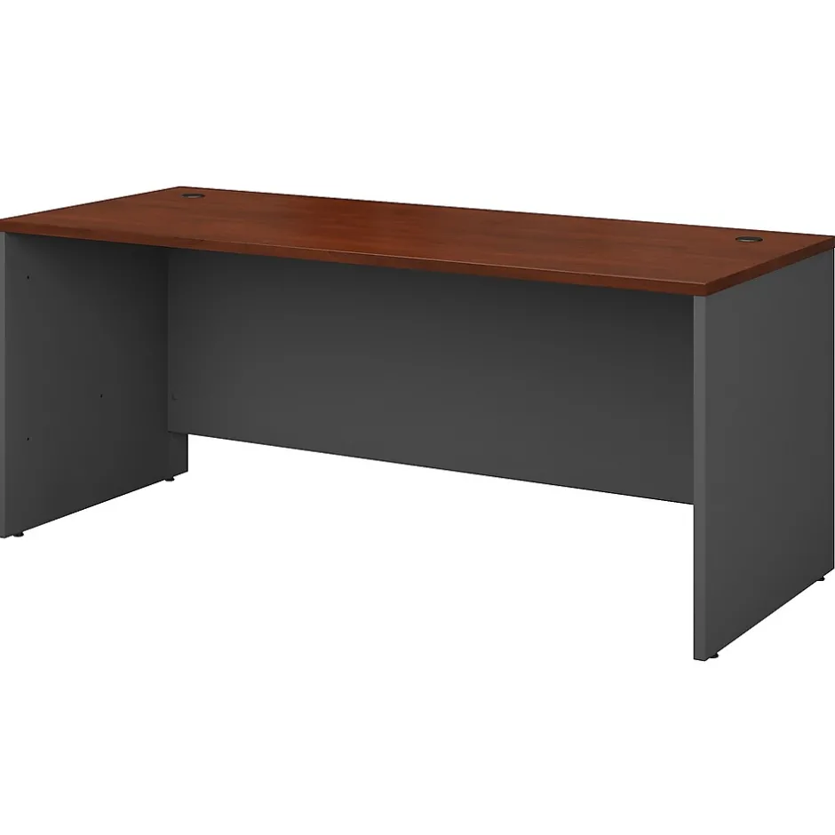 Get a wide work surface and opportunities for expansion with the Bush Business Furniture Westfield 72W x 30D Office Desk. Spread out with your paperwork, computer, phone and more on the rugged thermally fused laminate surface while concealing your cables in wire management grommets for a clutter-free work area. Depend on continued quality with a heavy-duty design, thick end panels and tough edge banding. Use the Office Desk by itself or expand your workspace with matching Westfield products to form an L or U Shaped configuration. Complete your office by adding a Hutch, Mobile File Cabinets, Keyboard Tray or Pencil Drawer (all sold separately). Extended modesty panels and clean lines make a lasting impression. Westfield offers endless layout options, expansion opportunities and 7 finishes. Backed by a 10 Year Warranty. American made with U.S. and imported parts.