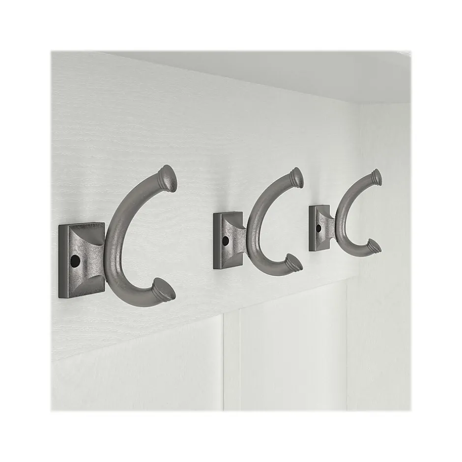 - Hall Tree includes three double-prong coat hooks in the front and one on each side for hanging jackets, hats, scarves and more