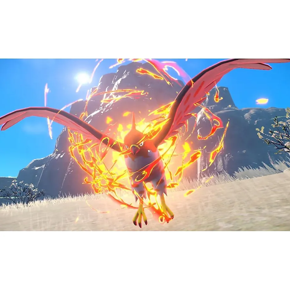 Catch, battle, and train Pokemon in the Paldea region, a vast land filled with lakes, towering peaks, wastelands, small towns, and sprawling cities. Explore a wide-open world at your own pace and traverse land, water, and air by riding on a form-shifting Legendary Pokemon: Koraidon in Pokemon Scarlet and Miraidon in Pokemon Violet. Choose either Sprigatito, Fuecoco, or Quaxly to be your first partner Pokémon before setting off on your journey through Paldea.