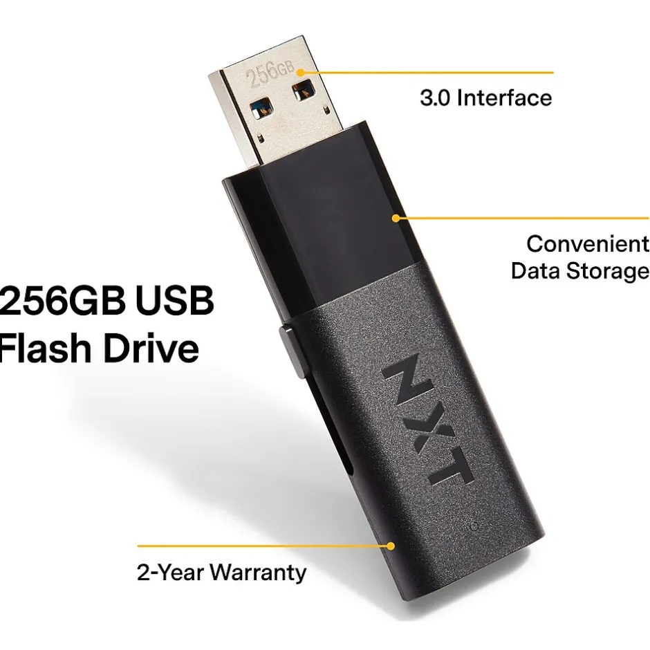 Rely on rapid data transfer speeds with this USB 3.0 flash drive. The compact size creates a portable traveling companion that slips in a bag, while the lanyard hole helps reduce the risk of misplacement. With a 256GB capacity, this NXT Technologies USB 3.0 flash drive accommodates plenty of documents, HD videos and photos, and the retractable design protects the connector from damage during transit.