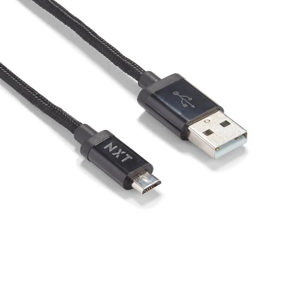 Depend on the durable braided construction of this Micro-USB cable for an uninterrupted connection. The 4-foot length delivers flexible placement in vehicle or offices for versatile use. This NXT Technologies™ Micro-USB cable features a strain-relief connection to easily withstand up to 10000 bend cycles.