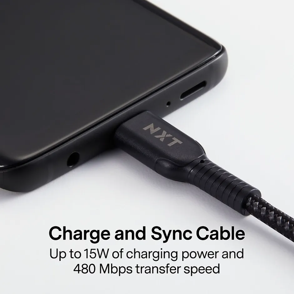 Utilize an adapter or laptop for reliable charging with this USB-C to USB-A cable. A braided cable resists tangling and damage, while the strain-relief design of this NXT Technologies™ USB-C to USB-A cable easily withstands up to 2,000 bend cycles.