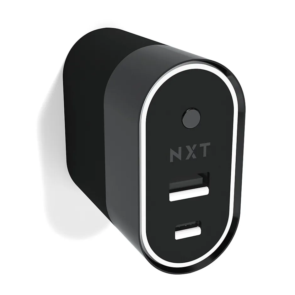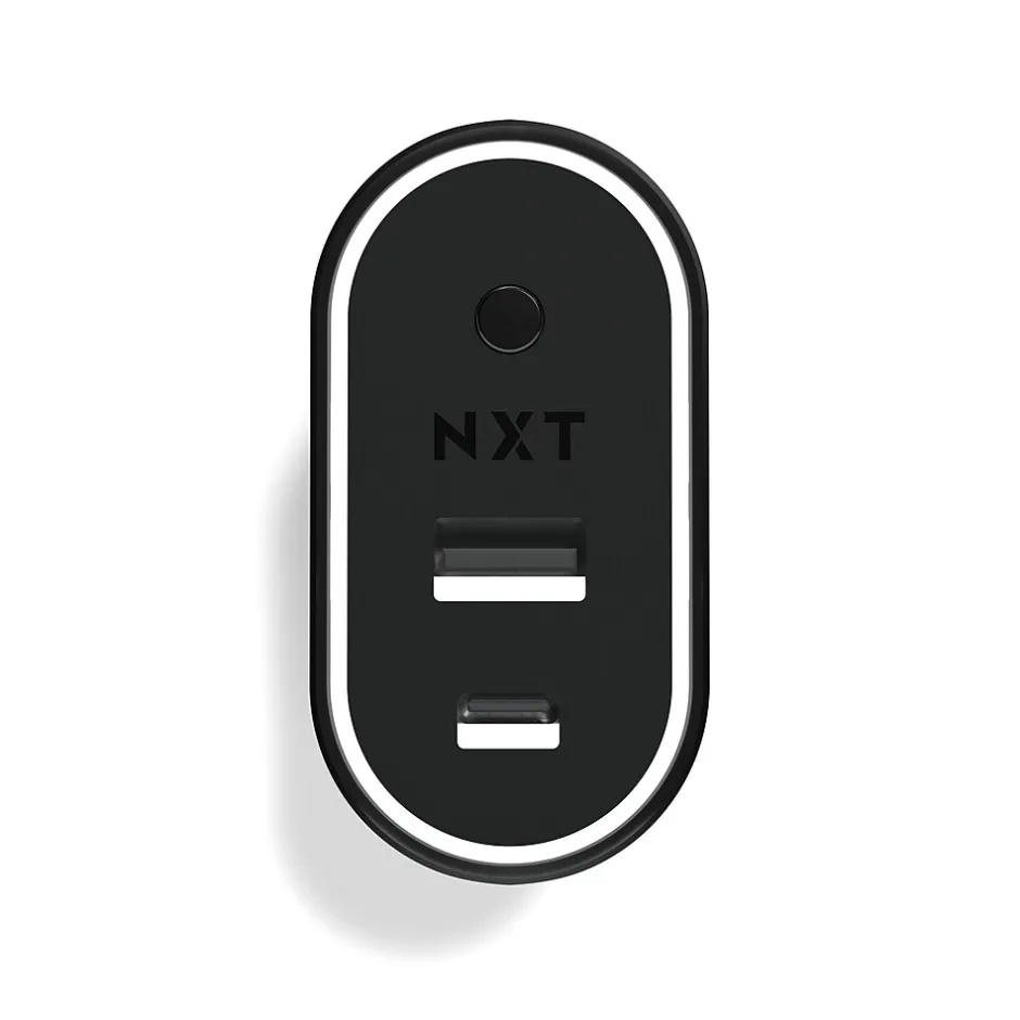 Get versatile charging power from the 12-watt USB-A port and 18-watt USB-C port. The compact design and folding plug make this charger ideal for travel. With illuminated ports, this NXT Technologies™ two-port black USB wall charger is simple to find when it’s dark.