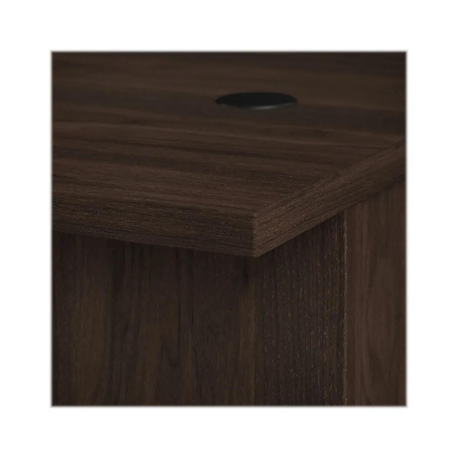 The Bush Business Furniture Office 500 71″W L-shaped executive desk with drawers provides a modern workspace with professional style and quality. Highlighted by its distinctive breakfront design, the Bush Business Furniture Office 500 L-shaped executive desk with drawers presents a workspace that showcases the style and personality of the today’s professional. Take a prominent position in your private office as you get to work on a spacious right- or left-handed desktop with built-in wire management. This L-shaped executive desk supports multiple monitors and other equipment with a weight capacity of 200 lbs. Two file cabinets fit underneath the desk for easy access to legal-, letter-, and A4-size paperwork and supplies. All three file drawers and one of two box drawers can be locked to secure sensitive documents and personal items. This L-shaped desk with storage is tested to meet ANSI/BIFMA standards for safety and performance and is backed by a 10-year manufacturer limited warranty. American-made with US and imported parts.