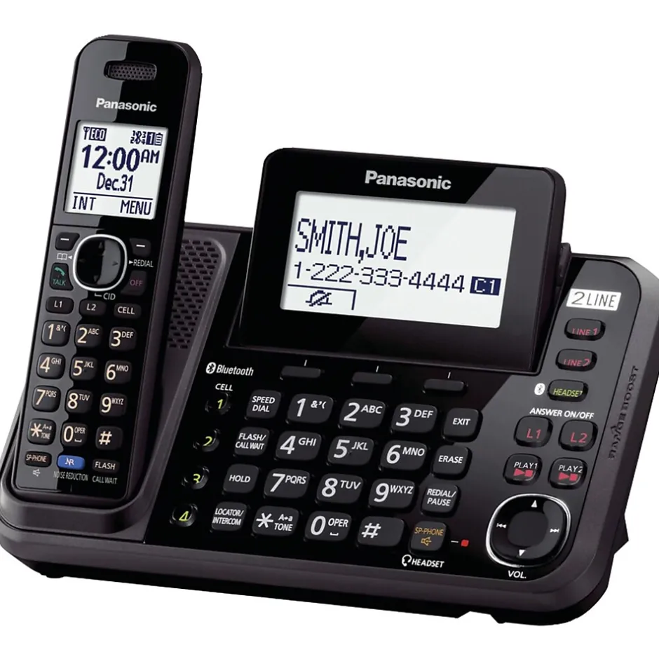 Panasonic Bluetooth Cellular Convergence Solution Landline Telephone 1-Handset uses DECT 6.0 technology to support 2 land lines and 1 cellular conversations simultaneously. It features 1.8″ white backlit display, USB charging and 2-line operation.