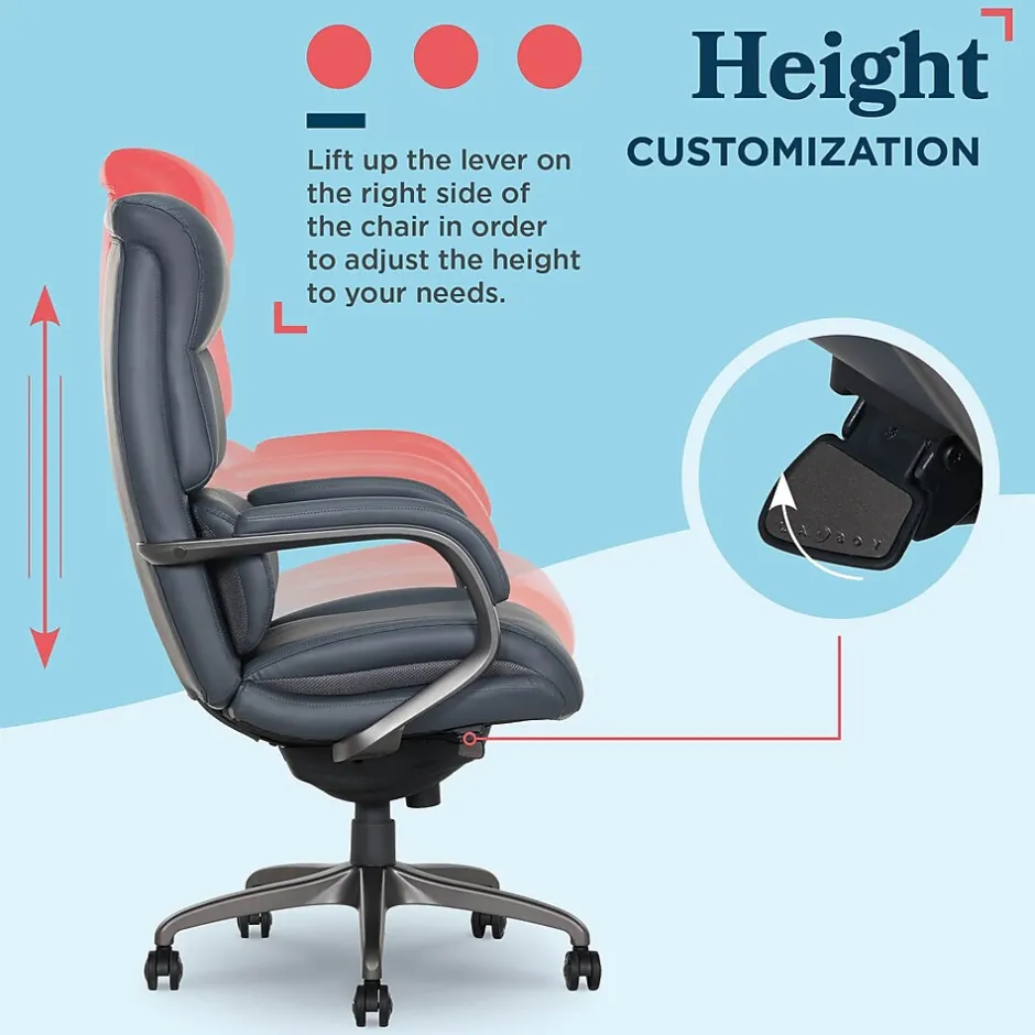 This La-Z-Boy Aberdeen computer and desk chair comes standard with the ComfortCore zoned technology for optimal lasting comfort. An advanced layering system is designed to offer deliberate, unique, and zone-based support. The chair has an extra-padded back design that will fit into any office area.