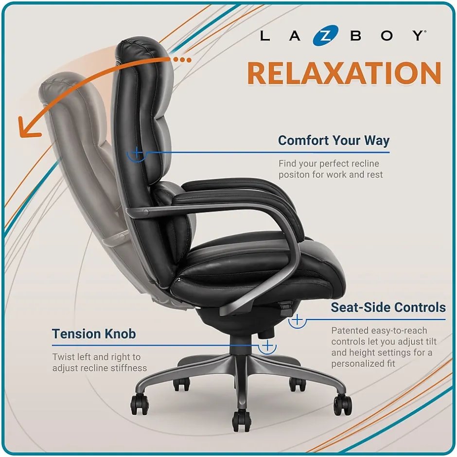 This La-Z-Boy Aberdeen computer and desk chair comes standard with the ComfortCore zoned technology for optimal lasting comfort. An advanced layering system is designed to offer deliberate, unique, and zone-based support. The chair has an extra-padded back design that will fit into any office area.