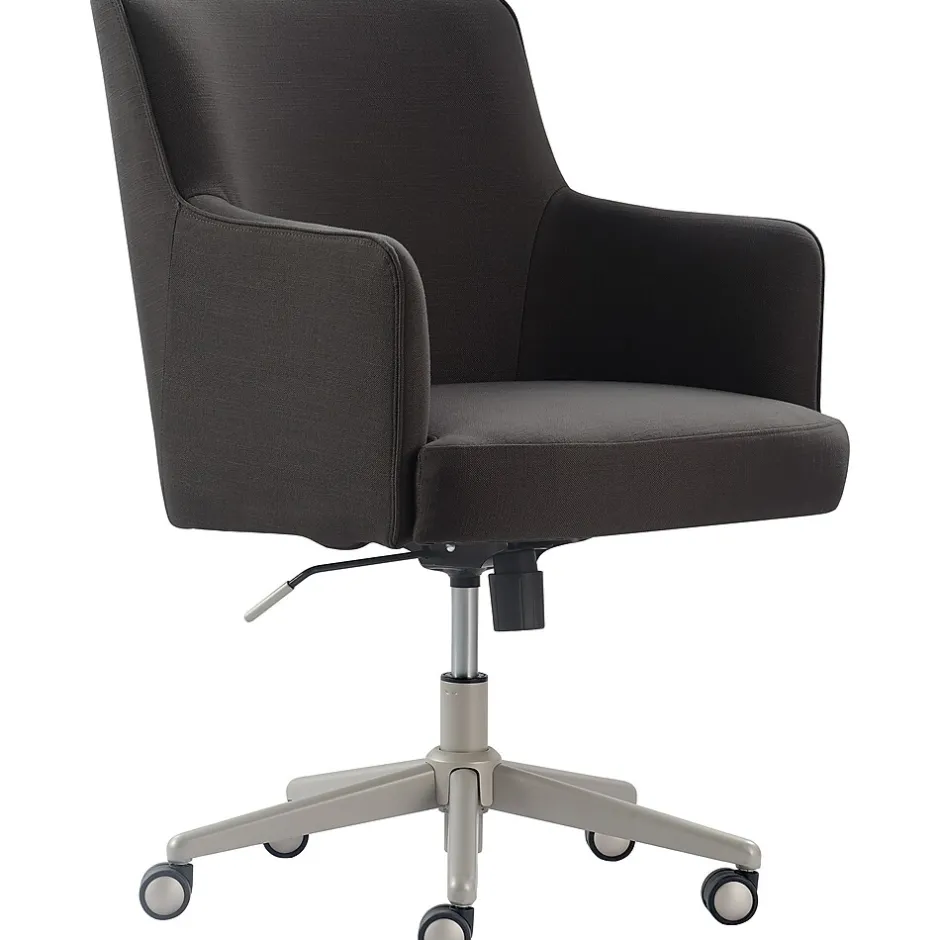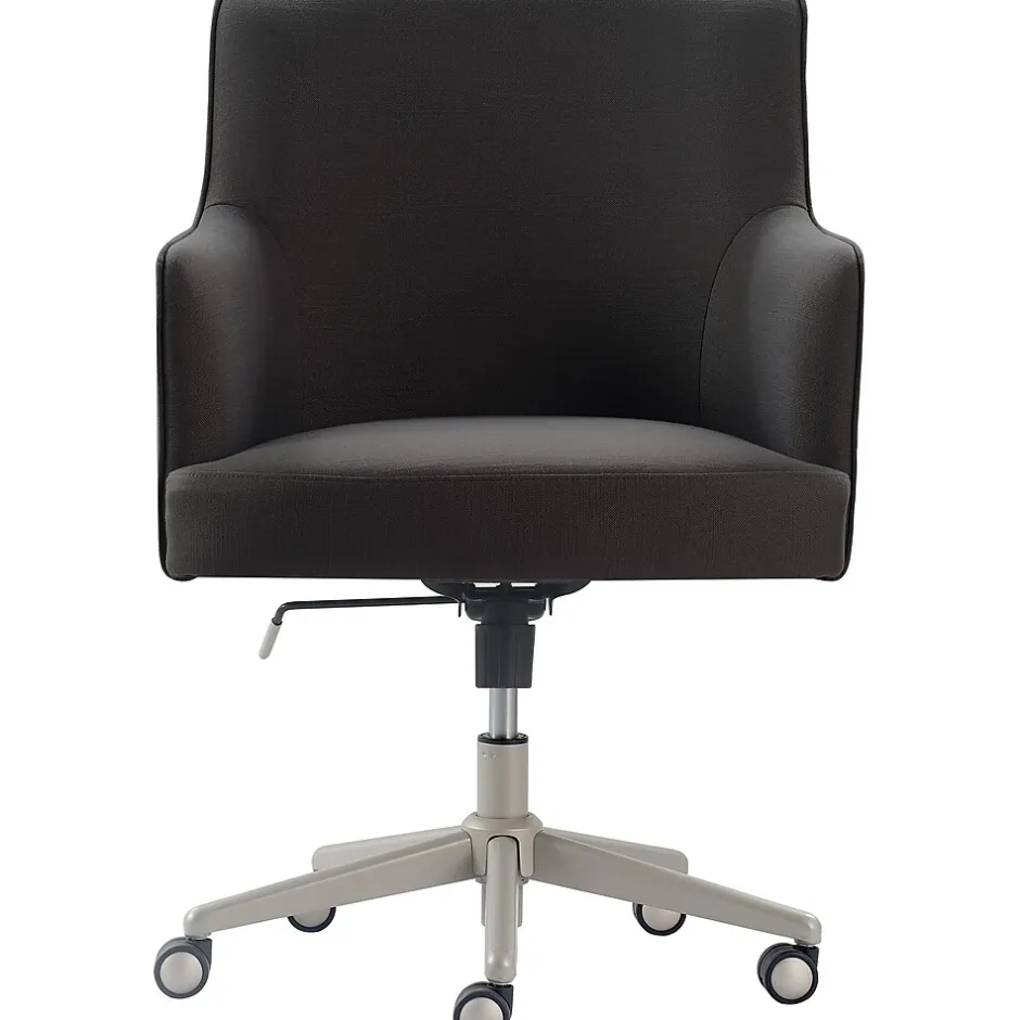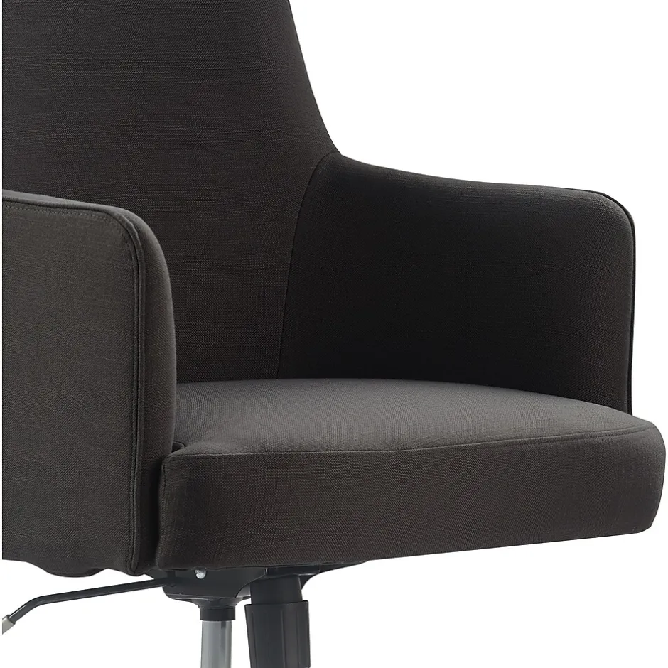 Smart and sophisticated, this Belmont modern office chair by Tommy Hilfiger gives your workplace a sense of organization and tidiness. The chair’s modern design features a high back and flared angled arms, upholstered in fabric for a tailored look. This desk chair is ergonomic and comfortable with a cushioned seat and padded back/arms for added support. Modeled after high-end office chair designs, this chair is available in a variety of colors and fabrics to complement any workplace, whether it’s a cute teen bedroom or an executive office suite.