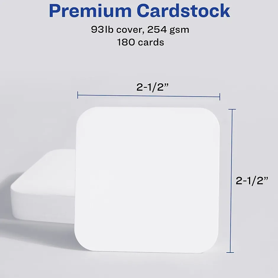 - Item includes 20 printable sheets with a total of 180 blank 2.5″ x 2.5″ cards perfect for small business cards, personalized gift tags, product price tags and more