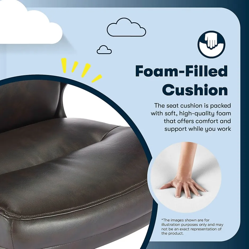 The better you sit, the better you’ll feel. Whether for work, play, or any other activity that has you sitting in our chairs, we believe comfort is everything. We know it’s a big responsibility and take it seriously, just as we do with our mattresses. With over 15 years of making chairs and innovating with designs, materials, and technology, Serta knows what it takes to give you a comfortable sit. The Serta Comfort series of office chairs offers a luxuriously cushioned seat, backrest, and armrests filled with thick, non-recycled Serta foam and upholstered in a soft breathable bonded leather to keep you cool and comfortable during extended use. This chair seamlessly blends its comfort with sleek design, accented by a single channel tuft. Choose from Black, Brown, Gray, or Cognac to find the perfect match for your workspace. This executive big & tall model is a high-back design which can be helpful for people who tend to experience discomfort due to long sitting periods. High-back chairs offer upper back, shoulder, and neck support and encourages proper spinal alignment by supporting the back in a neutral position which helps reduce muscle fatigue and promotes a better overall posture. The 360° swivel metal base on double-wheel casters glides smoothly across carpets or rugs, and can handle up to 350 lbs. Finding your ideal seated position is easy with the one-touch side lever for convenient height adjustment to match your work style and desk set-up. Whether you’re conquering emails or squeezing in work between kid duty and dog walks, the Serta Comfort Executive Big & Tall office chair will transform your home office into a command center of productivity.