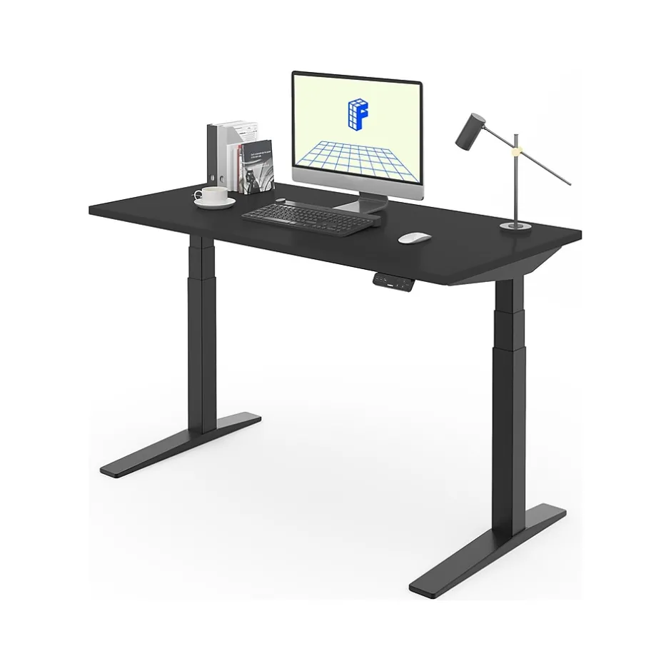 The FlexiSpot E7 Pro standing desk is an upgrade to the E7 and is much sturdier because of the extra overlap between stages of the lifting column. This overlap is critical to enhanced sturdiness. The sloping angle design of the feet and set back legs provide a more elegant style to your office. The E7 Pro includes a cable management tray and a magnetic fabric cable cover which makes installation a breeze.