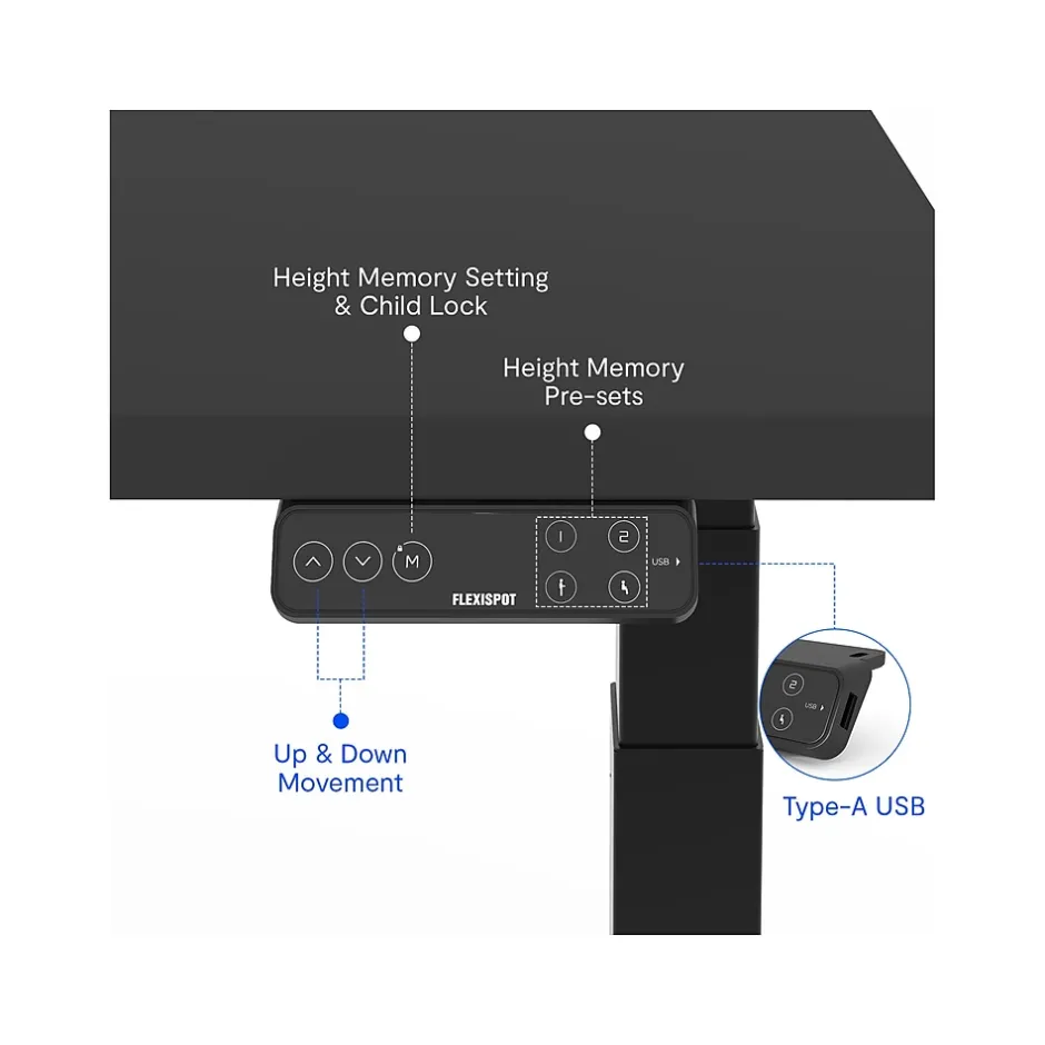 - Keypad supports four programmable height presets and offers you a better operation experience with the USB charging port
