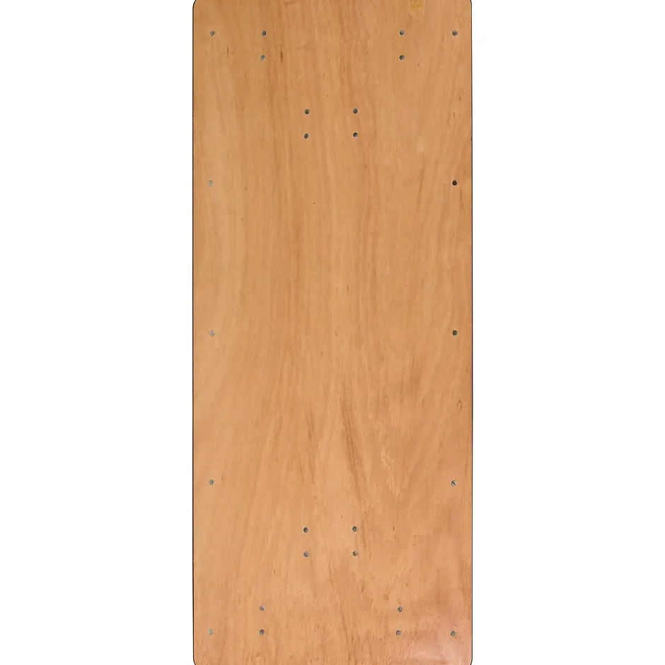 If you need a table for a buffet line, seminar seating or to display items at your trade show, this rectangular wood folding table is a perfect solution. This folding table is beneficial in a multitude of settings that include banquet facilities, schools, conference centers and in the home. Ideal for special events like weddings, bar and bat mitzvahs and fundraisers. Use in the home for extra dining space or in the garage for extra work surface. Leave this great looking table bare for everyday use or add a fitted table cloth and beautiful centerpieces to dress it up for formal occasions. If you don’t have a lot of space for a permanent setup, the legs fold under the table to make storage more convenient and for better portability. The included floor caps help protect flooring. This table is commercial grade to withstand everyday use in the hospitality industry.