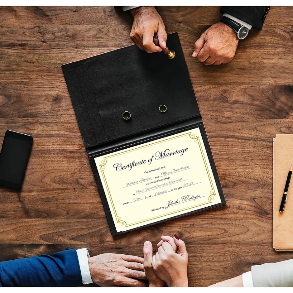 | Certificate & Holder Orientation The PRIMARY material that the item is made of. | Paper |