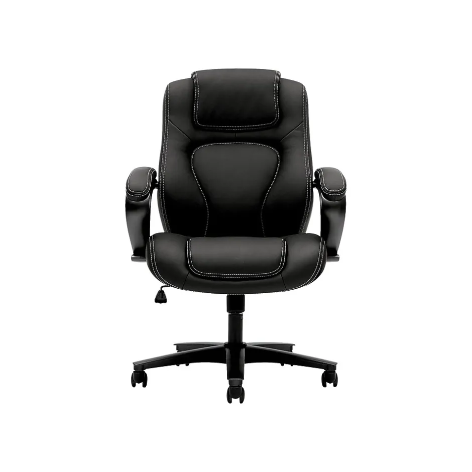 - Segmented, padded back design with contrast stitching offers an upscale look for any executive office or conference environment