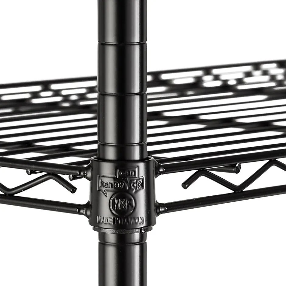 You love the versatility of shelving, if your shelving is versatile, that is. Well, it most certainly is with the heavy-duty 5-Tier Shelving Unit in Black. Maximize storage in the garage or any room of the house with this durable unit that can hold up to 800 pounds per shelf. Adjustable shelving heights is convenient for when shelving needs change or oddly-sized items arrive, like the large aqua deer statue that he just “had to have” from his last guys’ trip… hint, it’s going in the garage. Commercial-grade certification makes this the perfect kitchen, garage or closet shelving unit. Your shelving needs to keep up with you – we make sure it does.