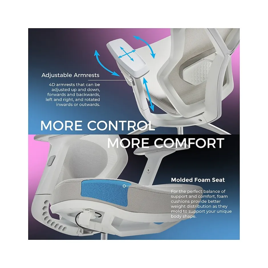 - Fully customizable 4D adjustable arms can be adjusted up and down, forwards and backwards, left and right, and rotated inwards or outwards to fit you perfectly