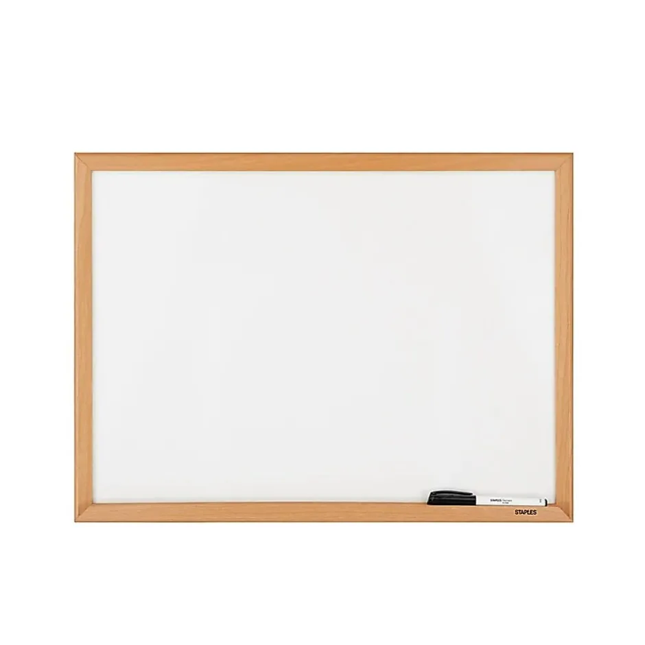 Sketch designs and visualize concepts with this dry-erase whiteboard. The smooth white surface makes words and pictures stand out, and the melamine material is easy to wipe clean. A built-in marker tray lets you keep multiple writing instruments close at hand. This Staples melamine dry-erase whiteboard is easy to mount on most walls and includes a marker so you can start brainstorming right away.