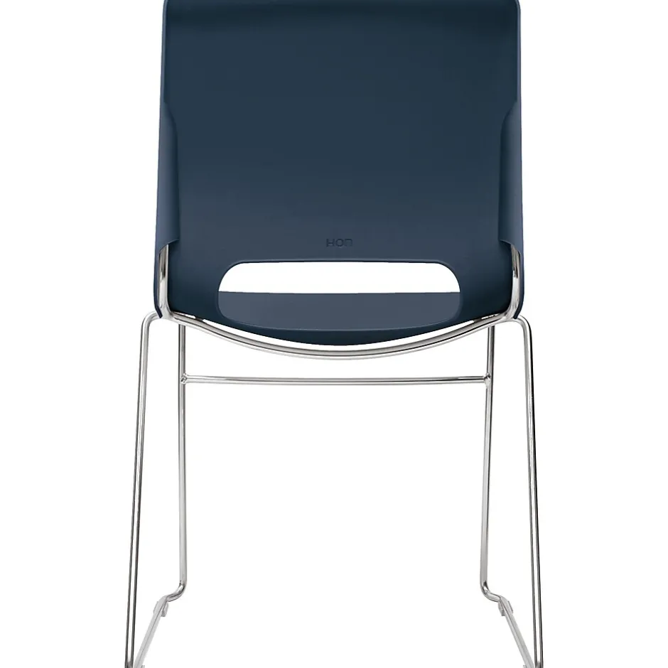 HonĀ® Motivate High density plastic stacking chair features classy regatta shell to provide unique comfort to your body. Chair with 300 lbs of capacity can be stacked up to 12 high on the floor or 40 high on cart to save maximum space.