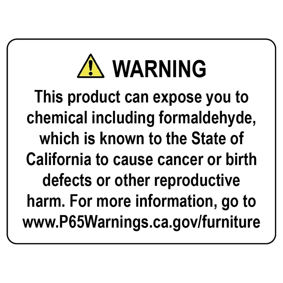 - âš WARNING: This product can expose you to chemicals including formaldehyde, which is known to the State of California to cause cancer or birth defects or other reproductive harm. For more information, go to www.p65warnings.ca.gov/furniture