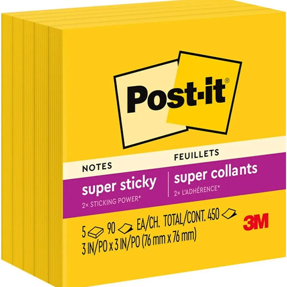 Online Super Sticky Notes, 3″ x 3″, , 90 Sheet/Pad, 5 Pads/Pack (6545SSY) Post-It Notes