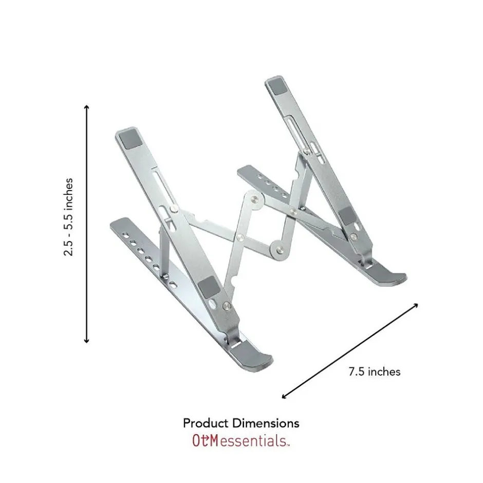 The OTM Essentials adjustable riser laptop stand helps raise your laptop to a perfect working position. Compatible with laptops, tablets, phones, and other devices.