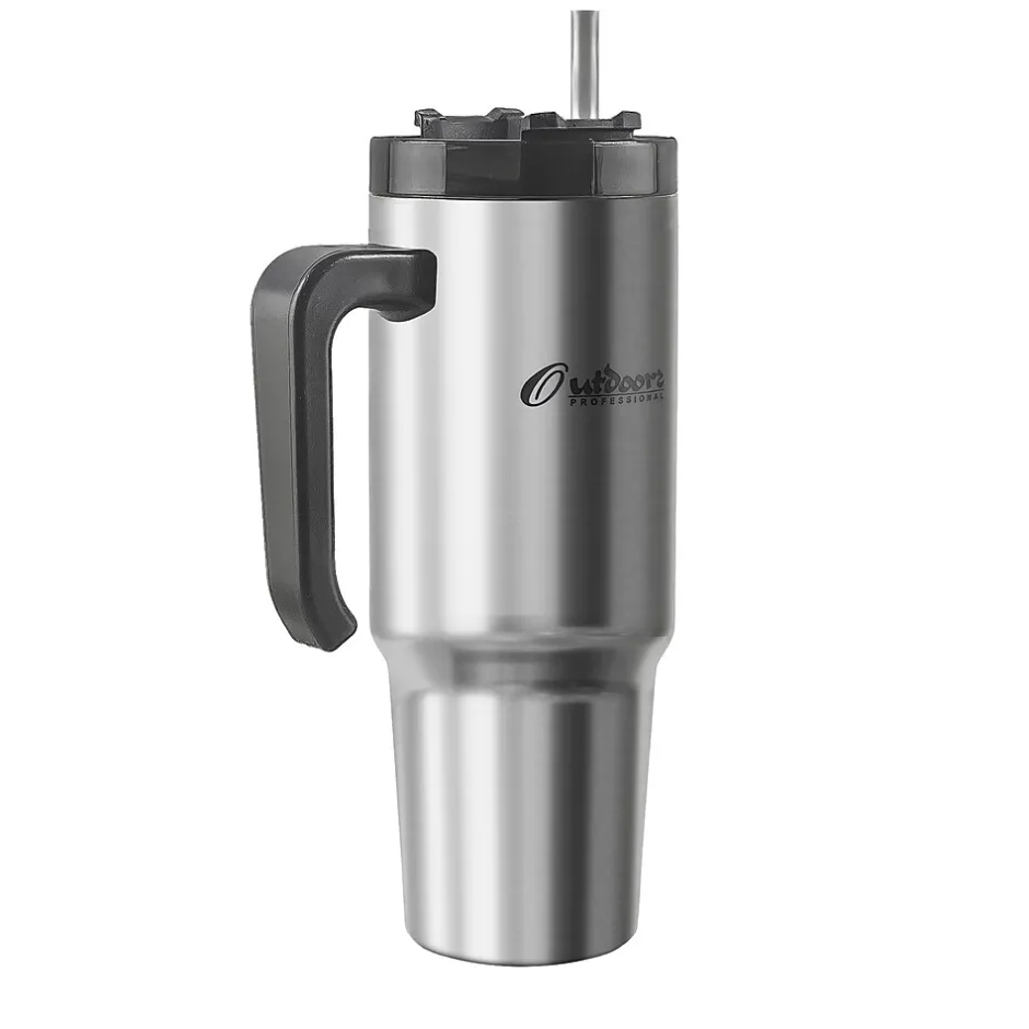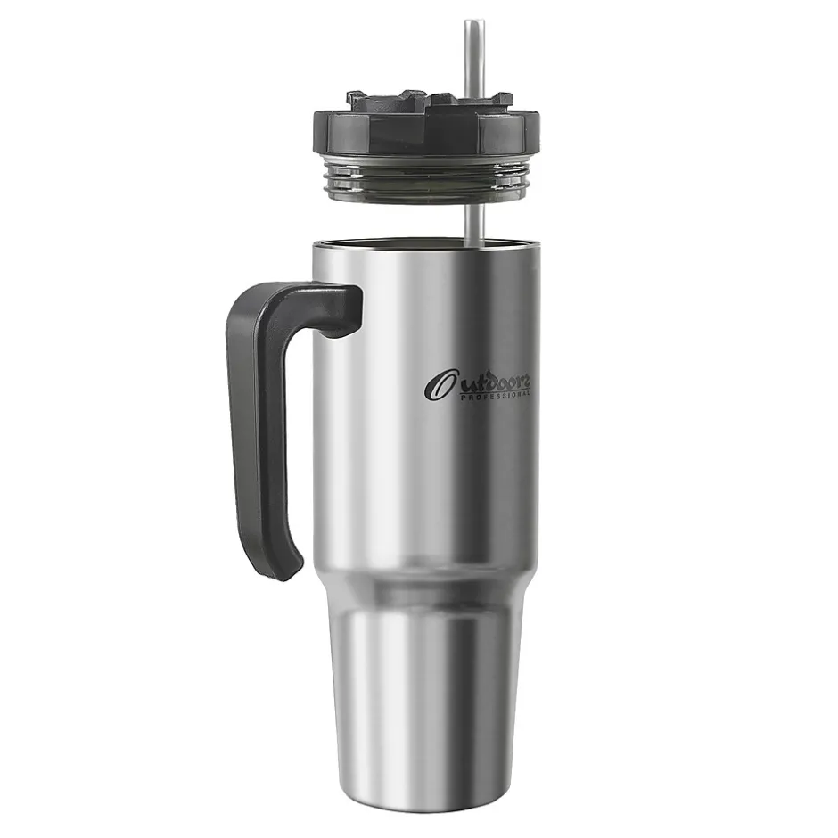 The Outdoors Professional 30-Oz. Stainless Steel Tumbler’s double-walled, vacuum-insulated technology will keep iced drinks cold for up to 30 hours, no-ice drinks chilled up to 9 hours, and hot drinks hot for up to 5 hours! No more settling for lukewarm sips or diluted flavors! If you’re on the go, this tumbler is built to fit any standard cup-holder. These tumblers are lightweight and durable. Crafted with stainless steel that is 100% BPA-free and nontoxic, this tumbler is built to withstand the rigors of everyday use, ensuring its durability for years to come. This tumbler features a screw-on splashproof straw lid to avoid spills and leaks. It’s not only lightweight and easy to carry but super easy to clean. Hand-washing is a breeze as the wide mouth allows for effortless access to every nook and cranny. It’s also dishwasher-friendly: simply toss it in, let the dishwasher work its magic, and have a sparkling clean tumbler!