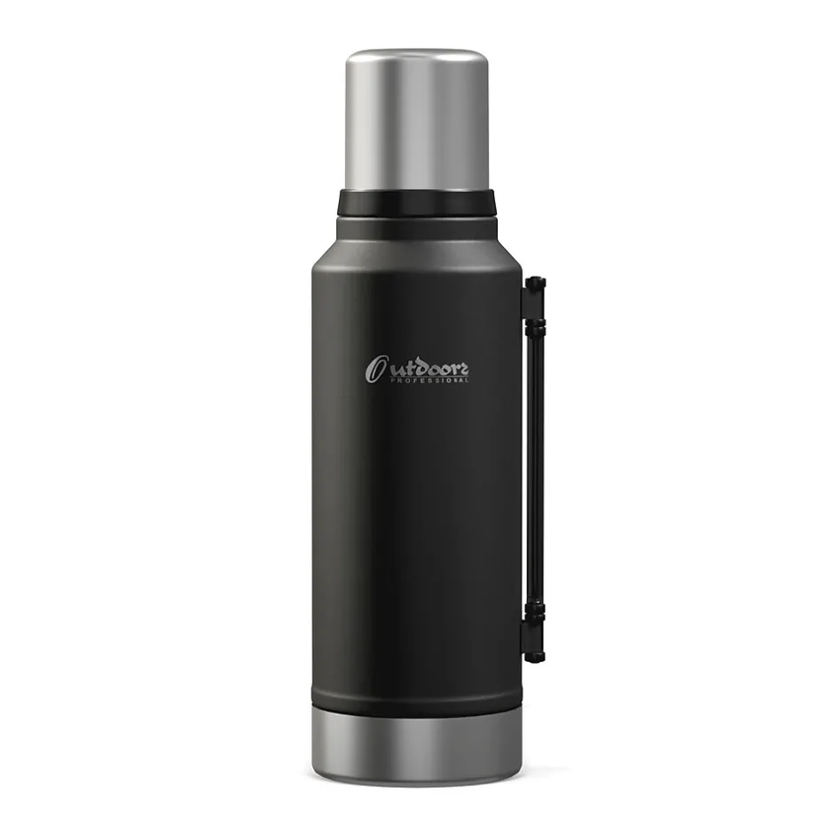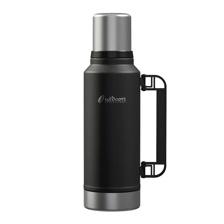 The Outdoors Professional Black 33.8-Oz. Termo Classic Vacuum Bottle with Carry Handle is made with superior insulation that keeps liquids (soup, coffee, tea) hot for up to 24 hours or cold drinks cool for up to 24 hours. Add ice to your favorite beverage and the Termo classic will keep it cold for up to 5 days. The rustproof stainless steel construction means it can work just as hard as you do without impacting its performance. This is an ideal bottle to throw in your truck, work bag, or travel with it. It’s made with BPA-free materials, keeping its contents safe to consume. This 1-L bottle features a leak-resistant lid, so you can put it in your backpack without worrying about any spills. The wide mouth opening helps with easy pouring into the lid that doubles as a cup. The collapsible handle makes it easy to transport when you’re on the go.