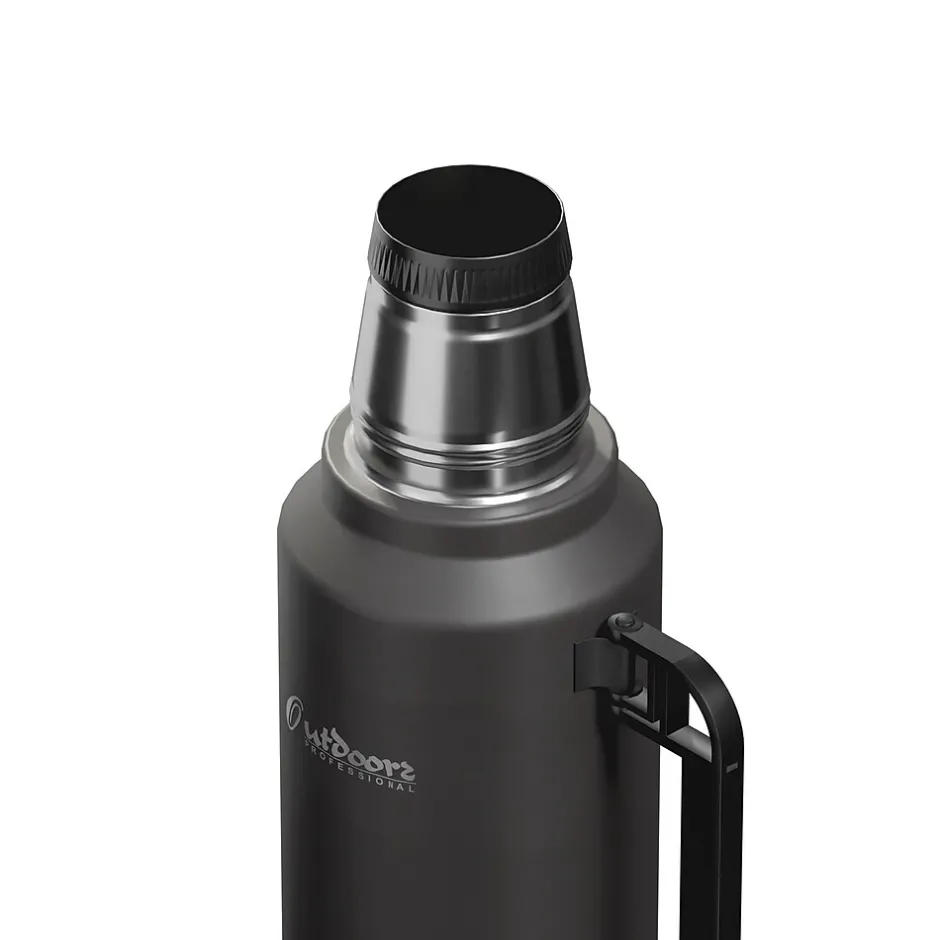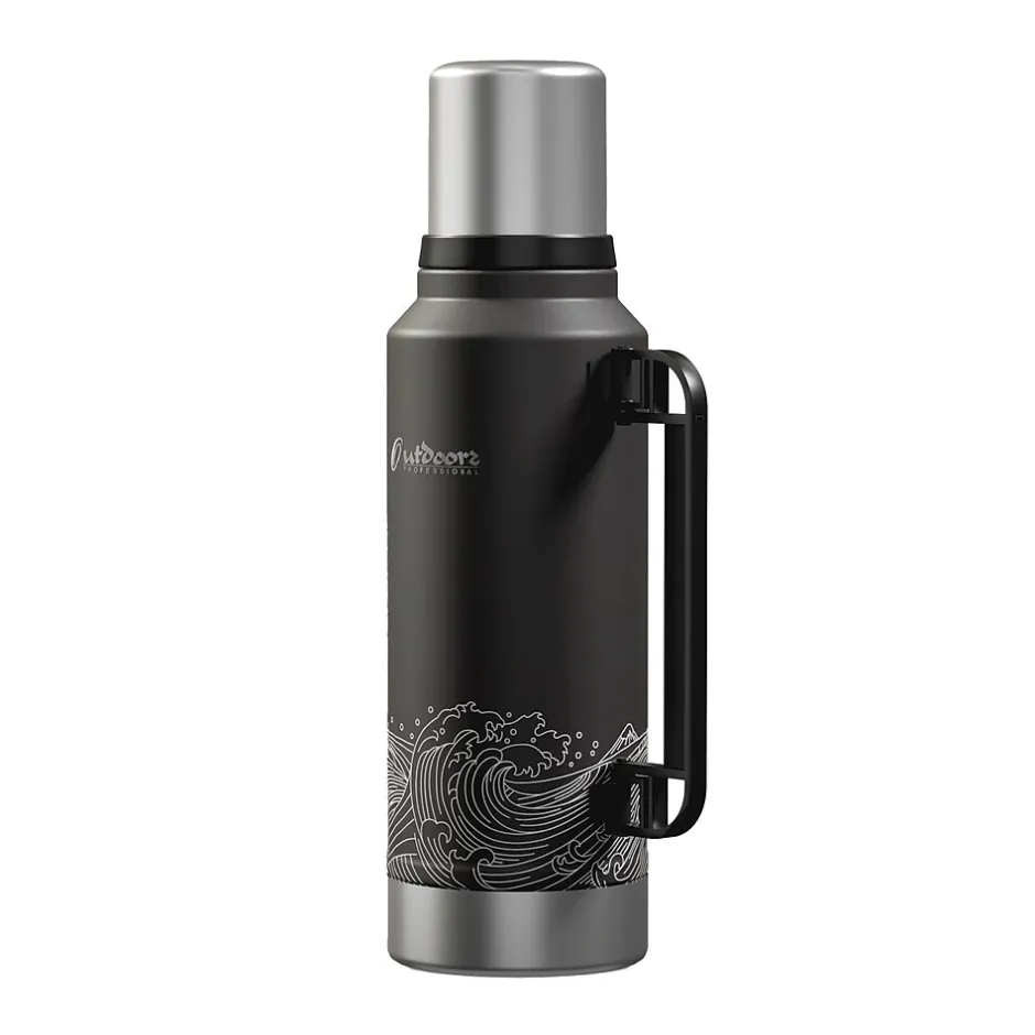 The Outdoors Professional Black Waves 33.8-Oz. Termo Classic Vacuum Bottle with Carry Handle is made with superior insulation that keeps liquids (soup, coffee, tea) hot for up to 24 hours or cold drinks cool for up to 24 hours. Add ice to your favorite beverage and the Termo classic will keep it cold for up to 5 days. The rustproof stainless steel construction means it can work just as hard as you do without impacting its performance. This is an ideal bottle to throw in your truck, work bag, or travel with it. It’s made with BPA-free materials, keeping its contents safe to consume. This 1-L bottle features a leak-resistant lid, so you can put it in your backpack without worrying about any spills. The wide mouth opening helps with easy pouring into the lid that doubles as a cup. The collapsible handle makes it easy to transport when you’re on the go.