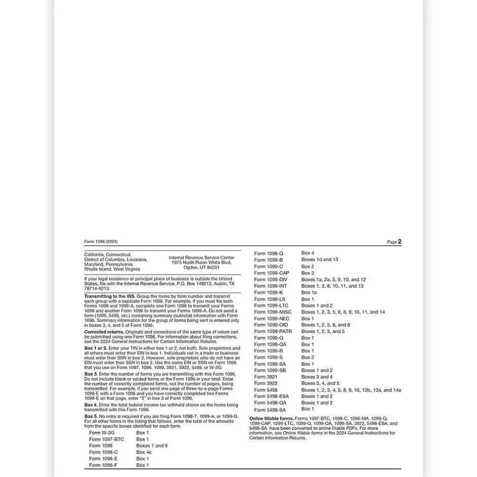 | Tax Form Pack Size | 1096 |