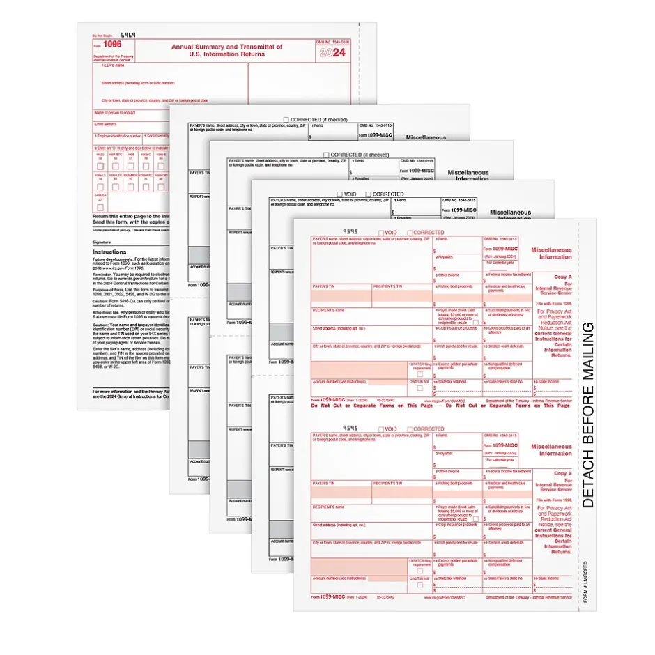 - 2024 4-Part 1099-MISC Forms for 50 recipients and 6 1096 forms