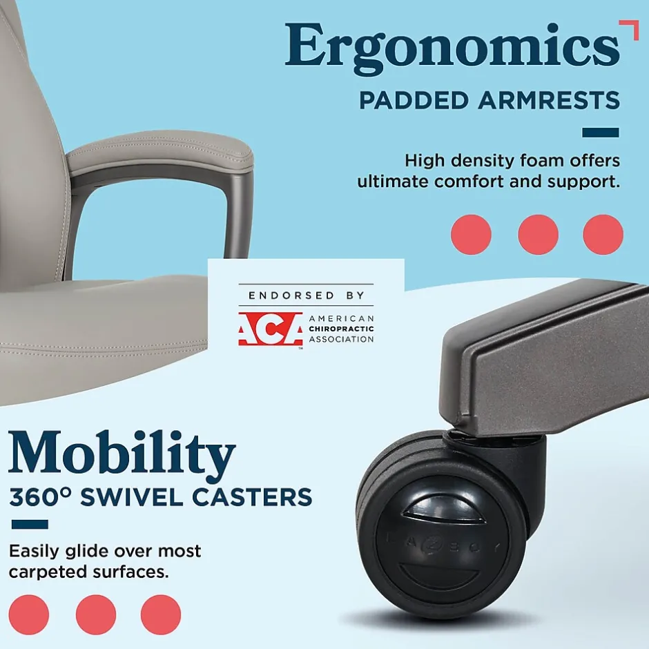 Stay productive yet relaxed with the La-Z-Boy Arcadian Bonded Leather Executive Chair. The Arcadian is beautifully designed with smooth, bonded leather upholstery and supportive, multi-layer ComfortCore seat construction to target body discomfort and promote circulation for hours of comfort.