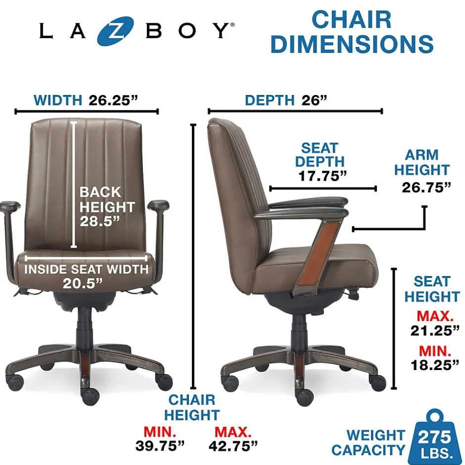 Boasting years of furniture experience and industry accolades, La-Z-Boy knows exactly how to build a comfortable living room chair – and now we put that expertise to work with the new Modern Office chair collection. Supportive from top to bottom, this chair offers premium comfort, thanks to an advanced cushioning layer system and a bevy of ergonomic features. But the executive chair’s style doesn’t skip a beat either: inspired by Herman Miller, our artisan furniture makers use streamlined elements, soft curves and wood accents to create an immediate eye-catching look. Ergonomic and adjustable, this La-Z-Boy office chair allows you to control the height, tilt and lift to suit your sit positioning and give you an optimized body alignment. La-Z-Boy office chairs are designed to put your comfort first with quality that’s built to last so your work day is always engaged and productive. No wonder we’re the industry standard for comfort and style.