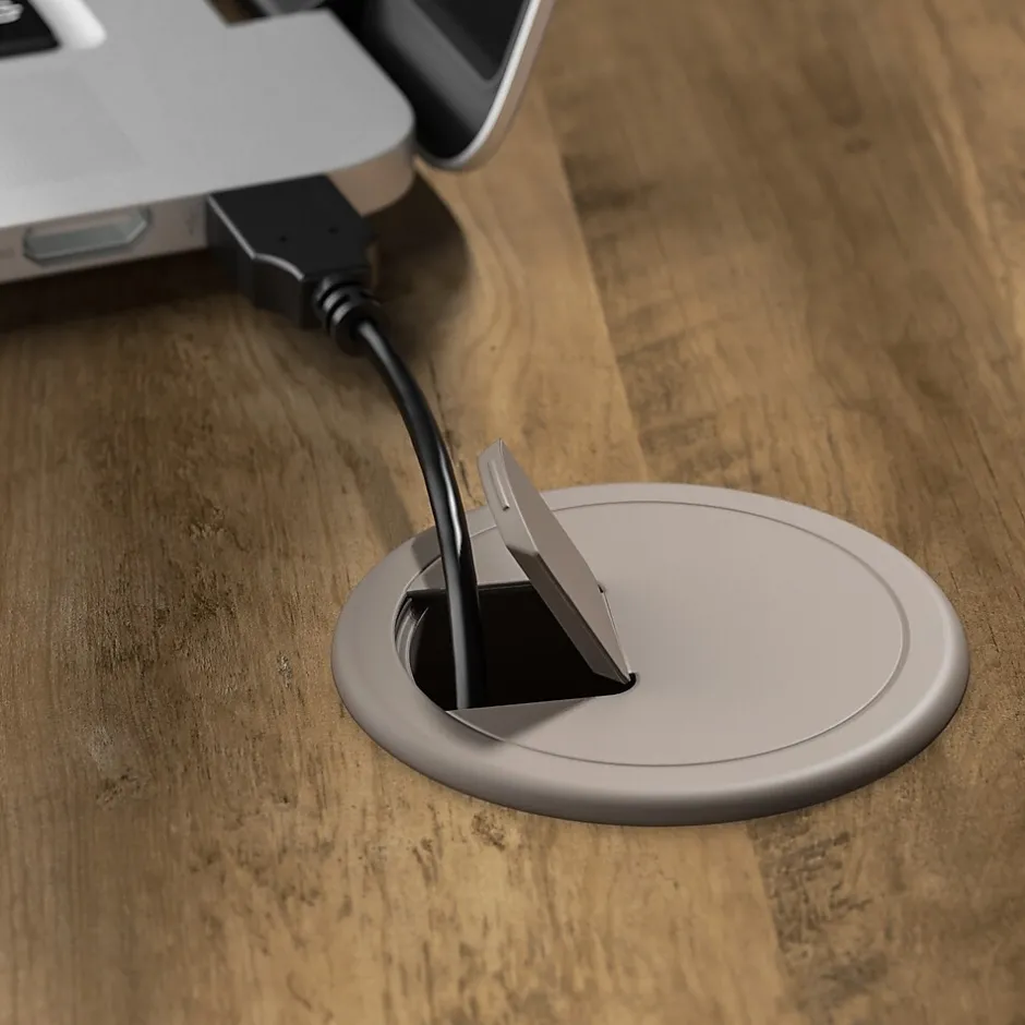 - Desktop’s 200-pound weight capacity and wire management grommets support multiple monitors and equipment