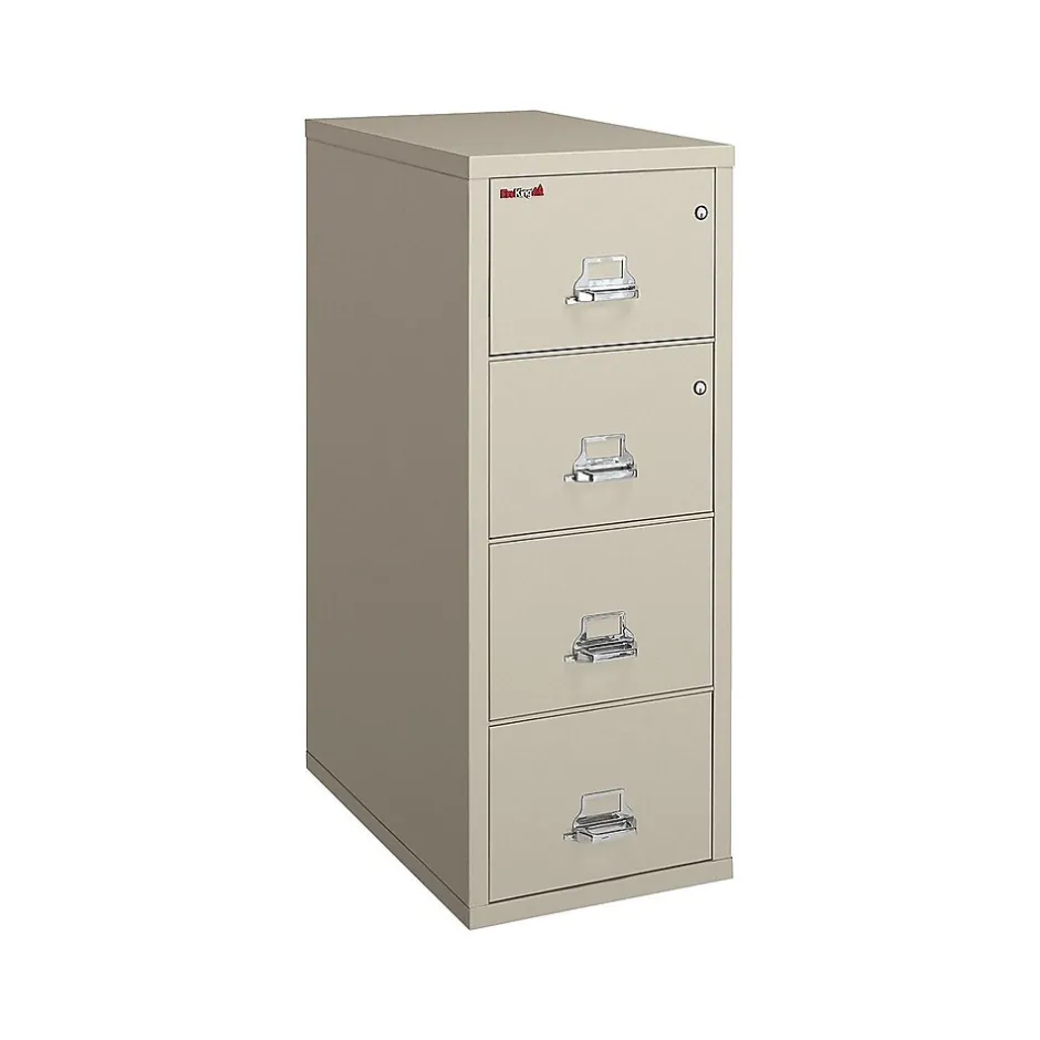 Use this heavily insulated vertical file cabinet to organize letter-sized folders. The inter-drawer insulation of this cabinet keeps files safe in the event of a fire, and the high-security key lock ensures that documents are for your eyes only. This file cabinet comes equipped with water-resistant technology, which prevents water from damaging files. With four roomy drawers, this FireKing file cabinet offers enough space to store essential papers for optimum organization.