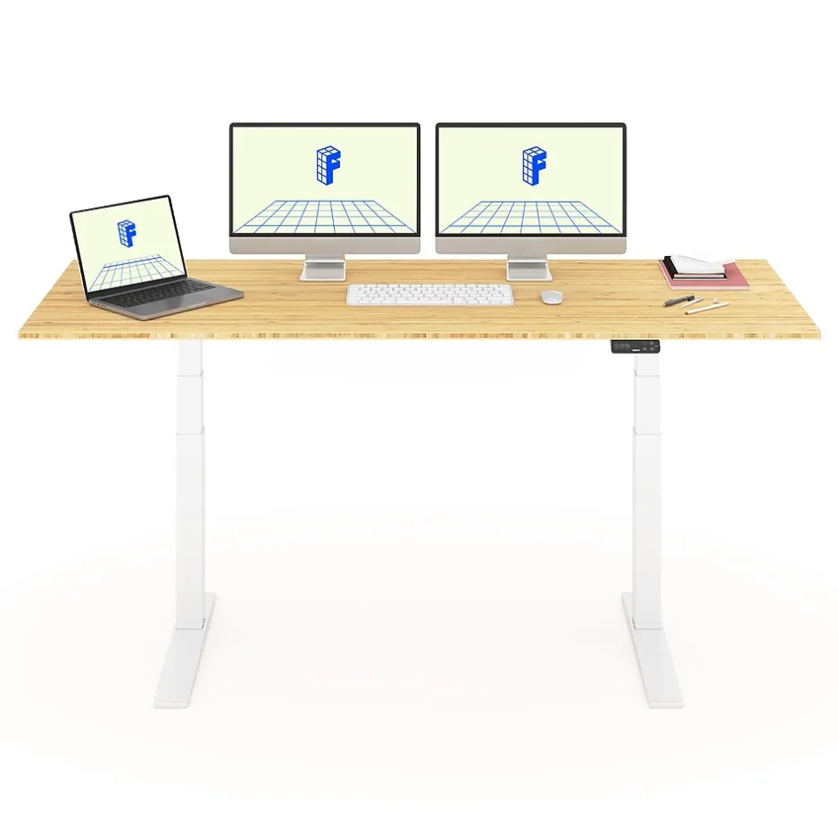 The FlexiSpot E7 Pro is an upgrade to the E7 and is much sturdier because of the extra overlap between stages of the lifting column. This overlap is critical to enhanced sturdiness. The sloping angle design of the feet and set-back legs provide a more elegant style to your office. The E7 Pro includes a cable management tray and a magnetic fabric cable cover that makes installation a breeze.