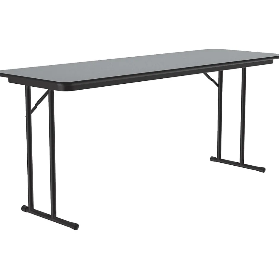 This offset leg folding table by Correll is constructed with the heaviest use in mind. Great for heavy-duty use in schools, universities, offices, hotels, and conference areas. The table’s thermally fused laminate top is water-, stain-, and dent-resistant. Folds for portability and storage space. Features a knife-lock mechanism attached to the back leg, making underneath the table completely open, and leaving nothing to interfere with the user’s legroom. Made in the USA.