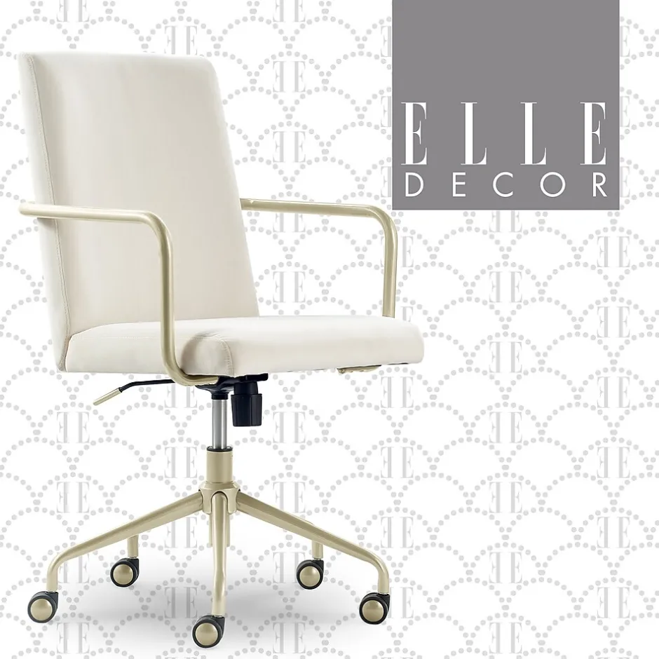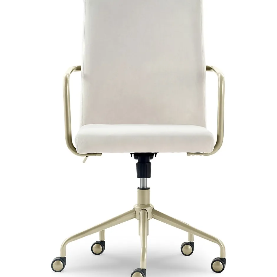 Turn your office space into a creative space with the Elle Decor Giselle desk chair. Chic and modern, this computer chair is decked head to toe with cool features. Its mid-century modern design features lustrous, gold metal trim on the arms, base, and wheels. Its butter-soft velvet fabric and high back will make you feel like an executive while the ergonomic seat cushion will keep you comfortable. Cute and versatile, this office chair adds a touch of elegance to any home office, teen girl’s bedroom, or dorm.