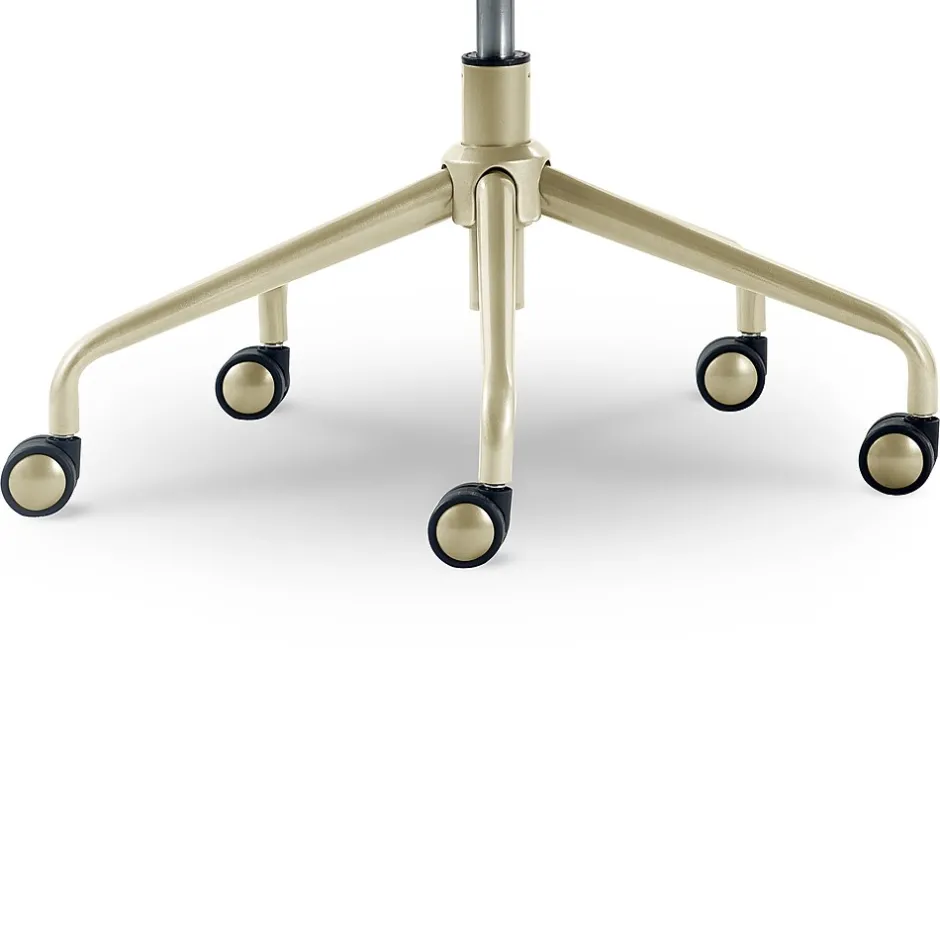 - Lustrous gold metal trim on the base, wheels, and arms adds modern glamour