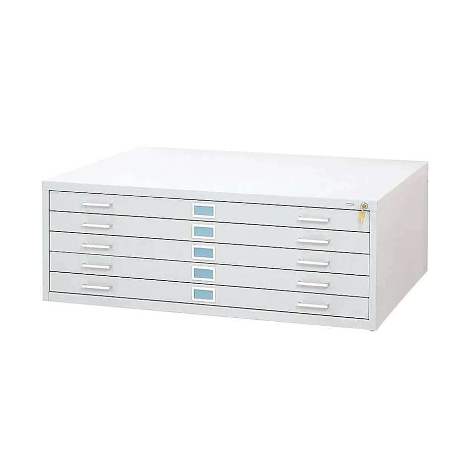 Safco® 5-Drawer steel flat file for 30″ x 42″ documents in steel construction features positive closures to keep drawers tightly shut and courtesy stops to keep them in place while open. Rear hood and hinged front depressor keeps the contents clean.