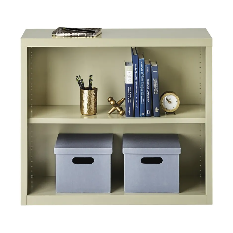 - Two-shelf steel bookcase in baked putty enamel finish perfect for schools, libraries, and offices