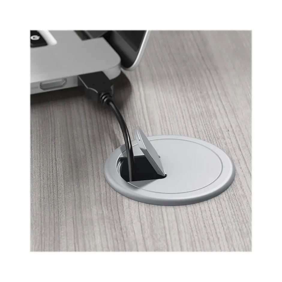 - Desktop includes three built-in wire management grommets to keep cords and cables out of the way