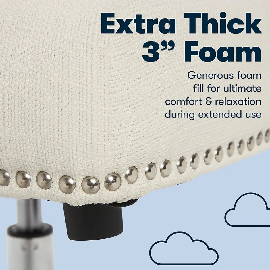 Add a touch of modern elegance to your space with a design that is equally functional and stylish. This expertly-wrapped, neutral design is height-adjustable to tailor your professional space. The chrome-finished, stainless-steel stand offers you 360-degree swivel and casters for easy mobility. The memory foam seat and arms with pocket coils feature renowned Serta comfort, perfect for home or office use.