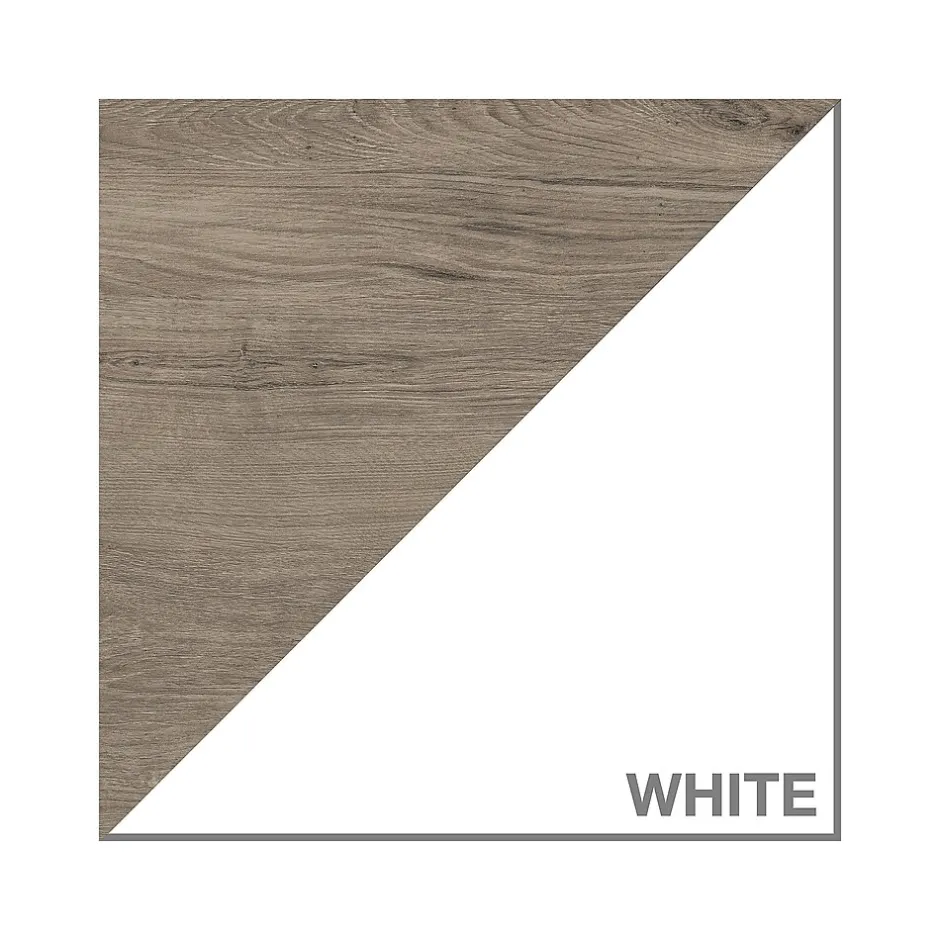 - Standard bookcase is made of laminate over engineered wood in a pure white/shiplap gray finish