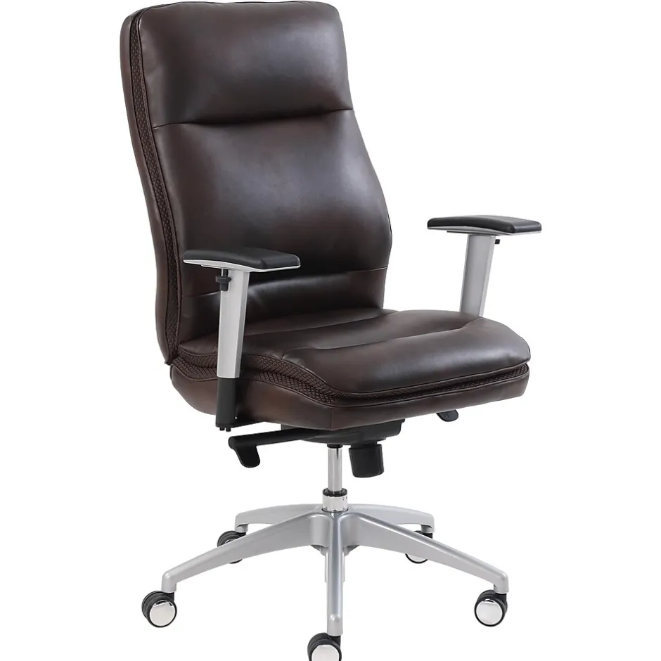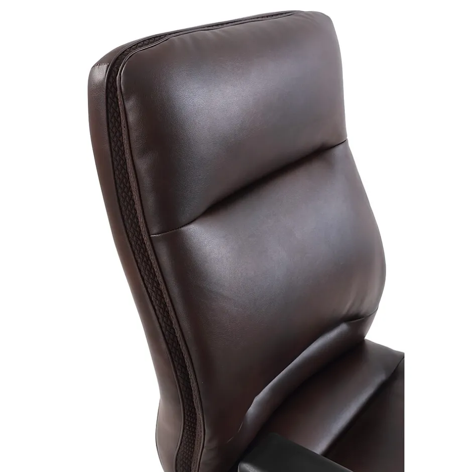 - Upholstered in soft brown bonded leather