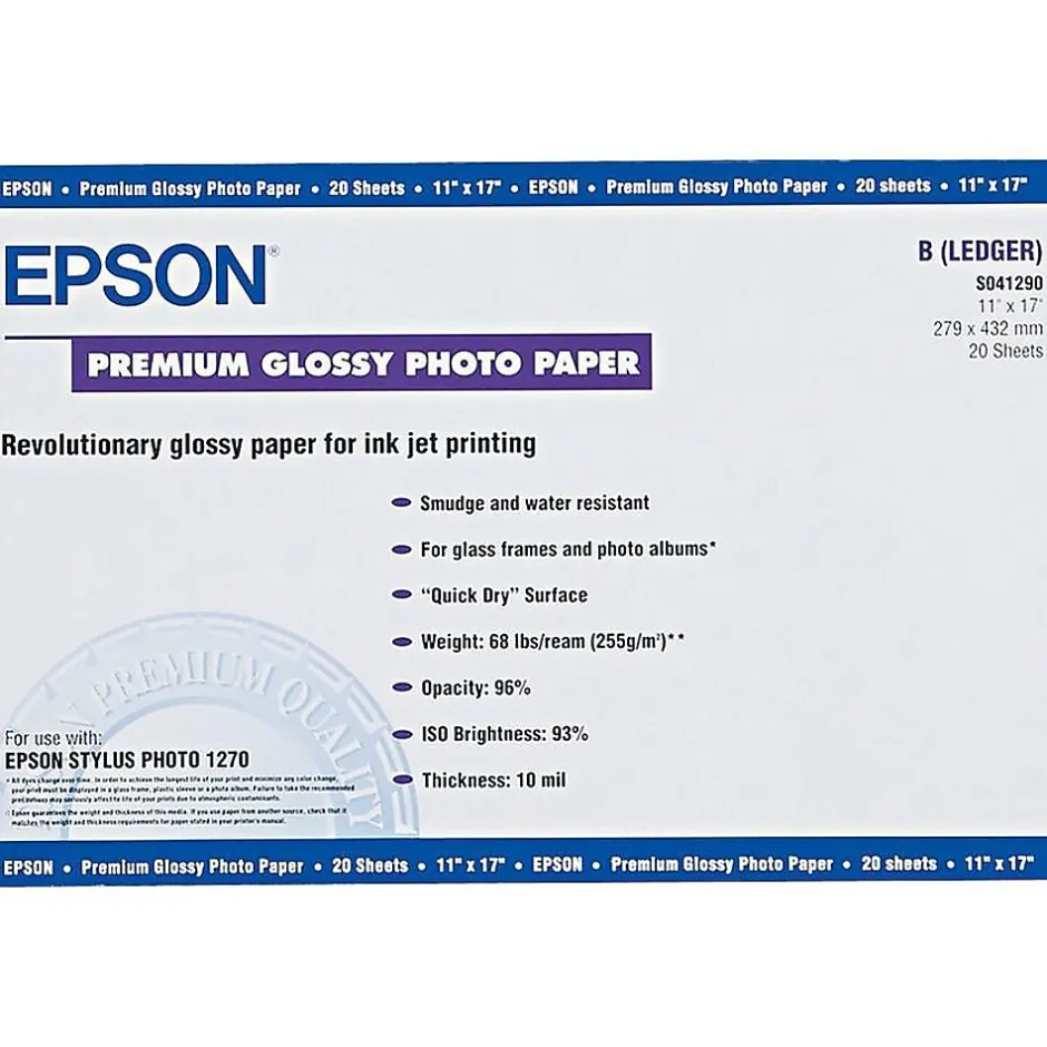 Enlarge pictures with this 20 pack of premium tabloid-size pages. They’re coated with resin, giving printouts the look and feel of traditional photos, and the paper is water-resistant, so images won’t bleed if wet. This Epson glossy paper is smudge-resistant, so it sets quickly when printed and won’t rub out.