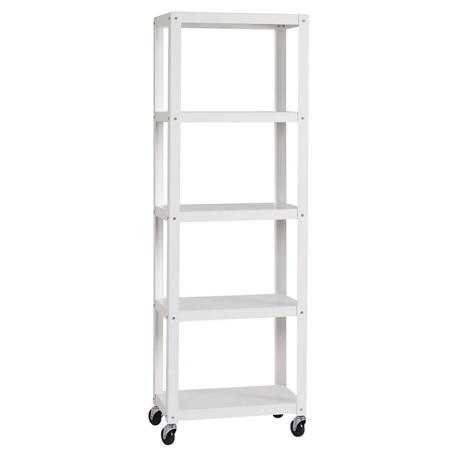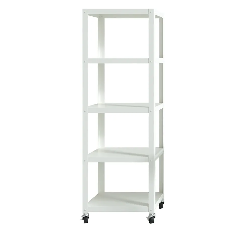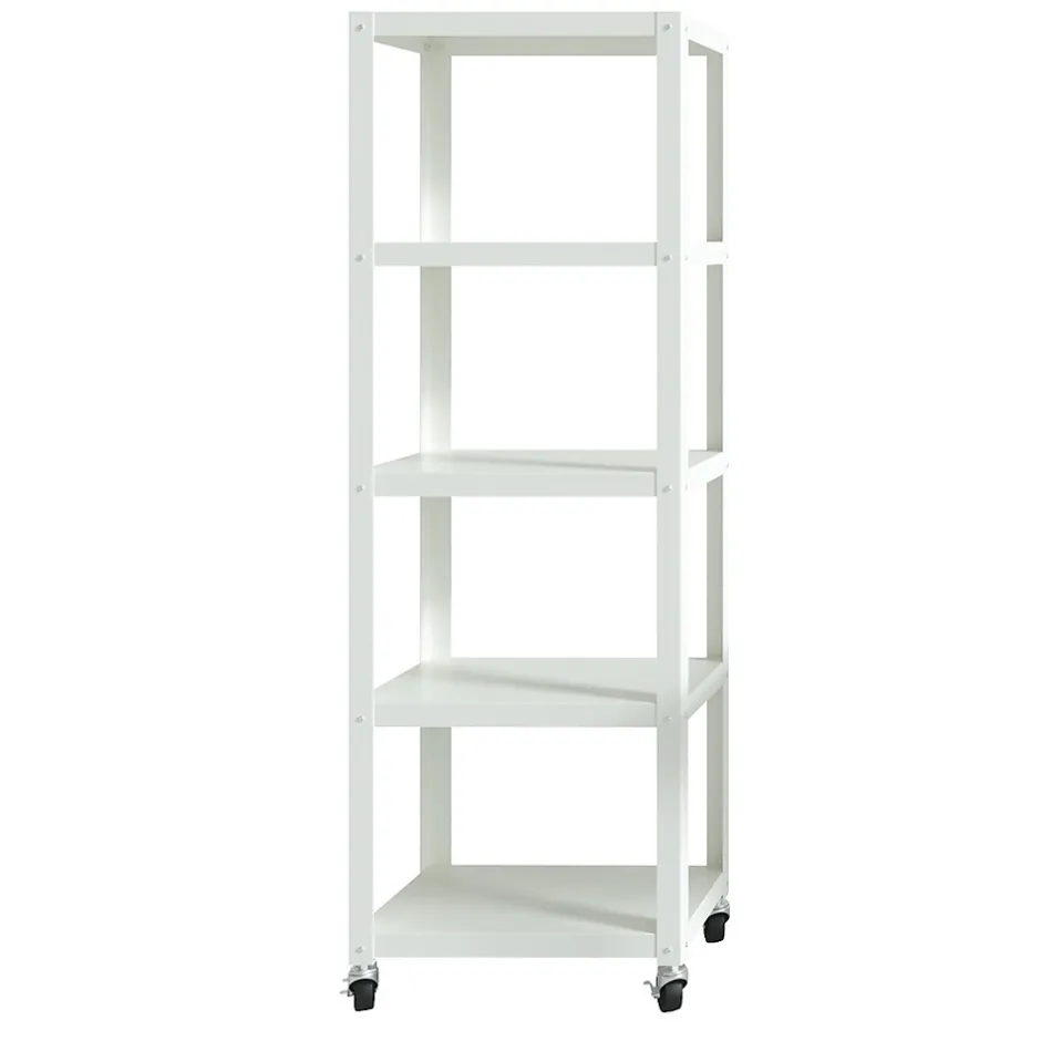 The Five Shelf Tower is great in any room. This steel construction heavy-duty shelving unit is durable enough for most uses and sports a modern design.It is an excellent storage solution for craft rooms, offices, kitchen, pantries, or more. Sized at 72″ x 24″ x 14″, this attractive and strong shelving unit gives you flexibility for whatever your storage and organization needs are. Whether you need a shelf for your printer, books, craft supplies, or additional kitchen storage, this 5-shelf tower is the answer. The additional wheels also allow this shelving unit to be easily moved as needed. Assembly is required.