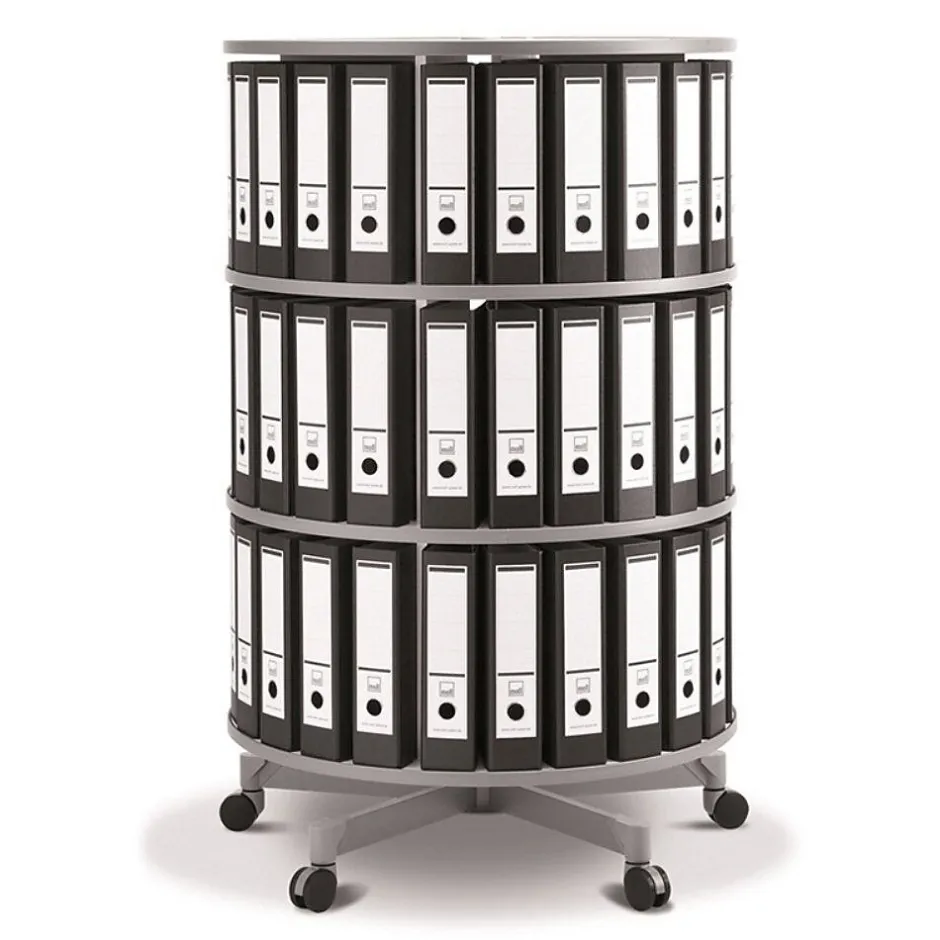 Moll® Three tier spin and file binder storage carousel can be accessorized with casters, organizer set and CD organizer. Carousel features slender 32″ diameter unit which offers abundant storage in a small area.